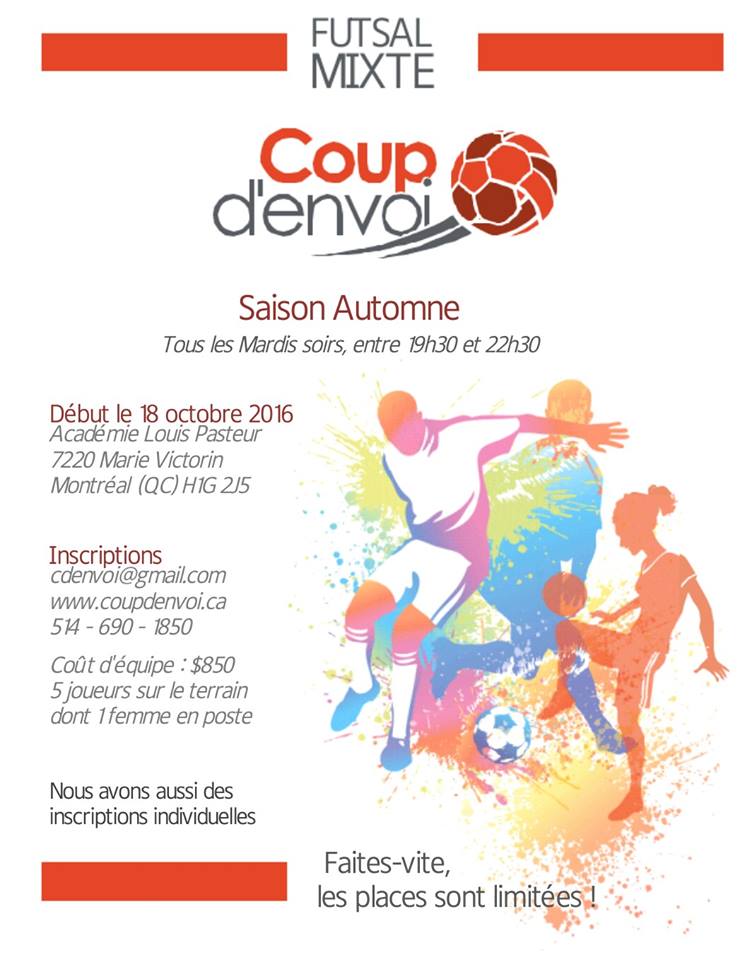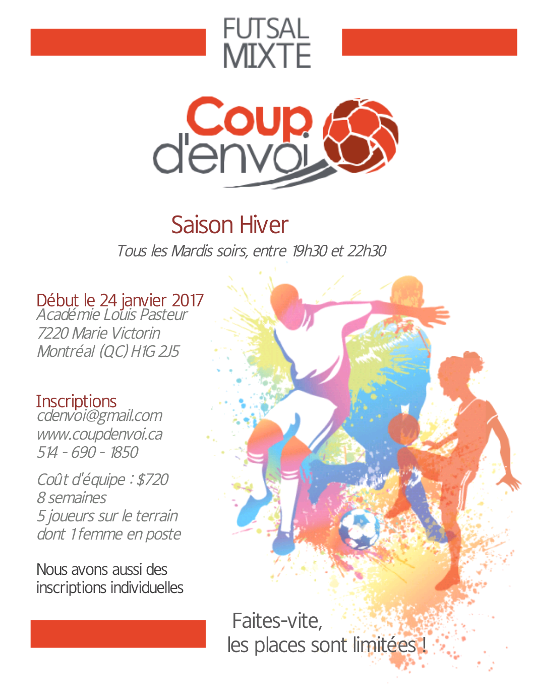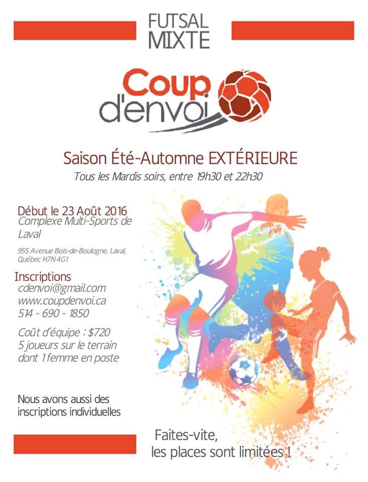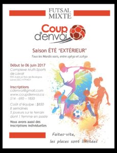 24 mai 201725 mai 2017 Le FUTSAL EXTÉRIEUR est de retour! Inscrivez-vous maintenant! Les places sont limitées. Saison été. 8 semaines.