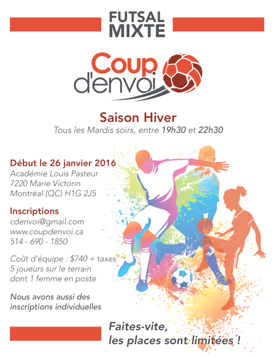 1 mars 201625 mai 2016 Saison Printemps Inscrivez-vous dès aujourd’hui Faites-vite, les places sont limitées!